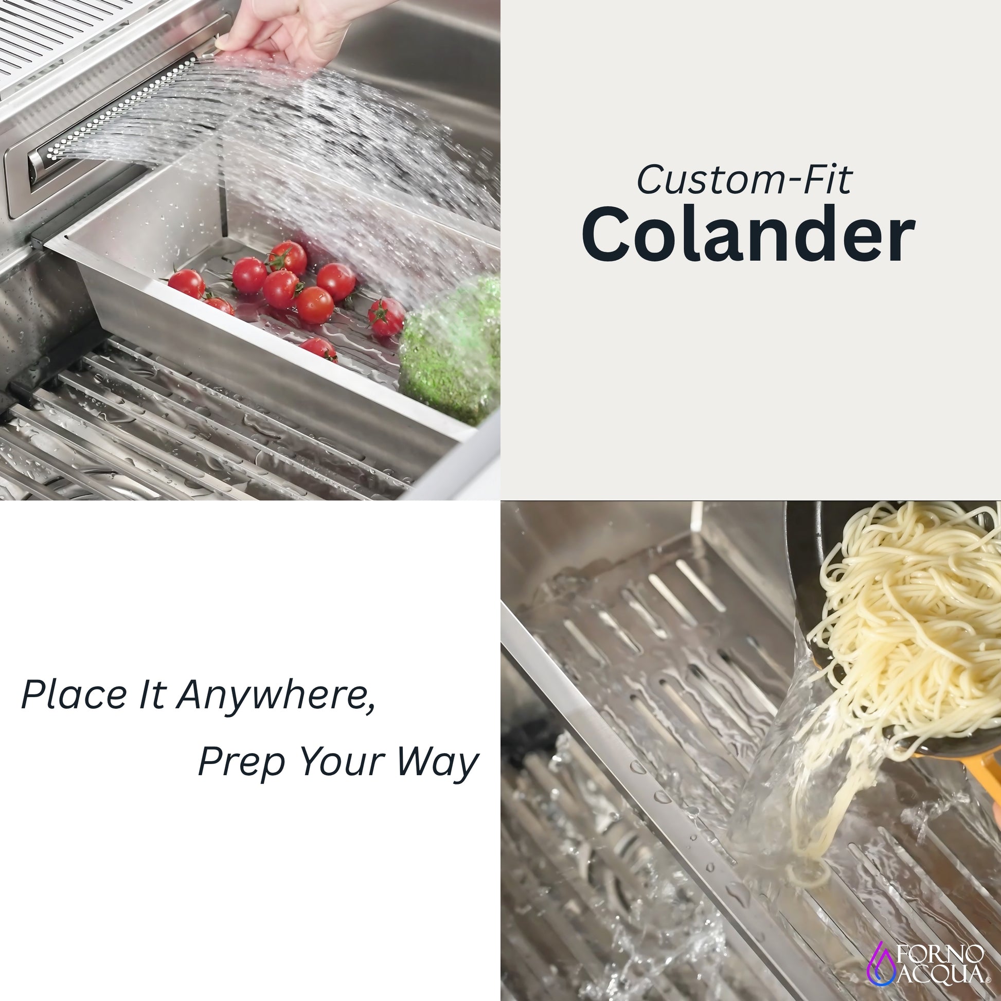 * One Touch Pivoting WaterWALL minimizes splashes and delivers a Waterfall Rinse that sweeps over produce, dishes & cookware