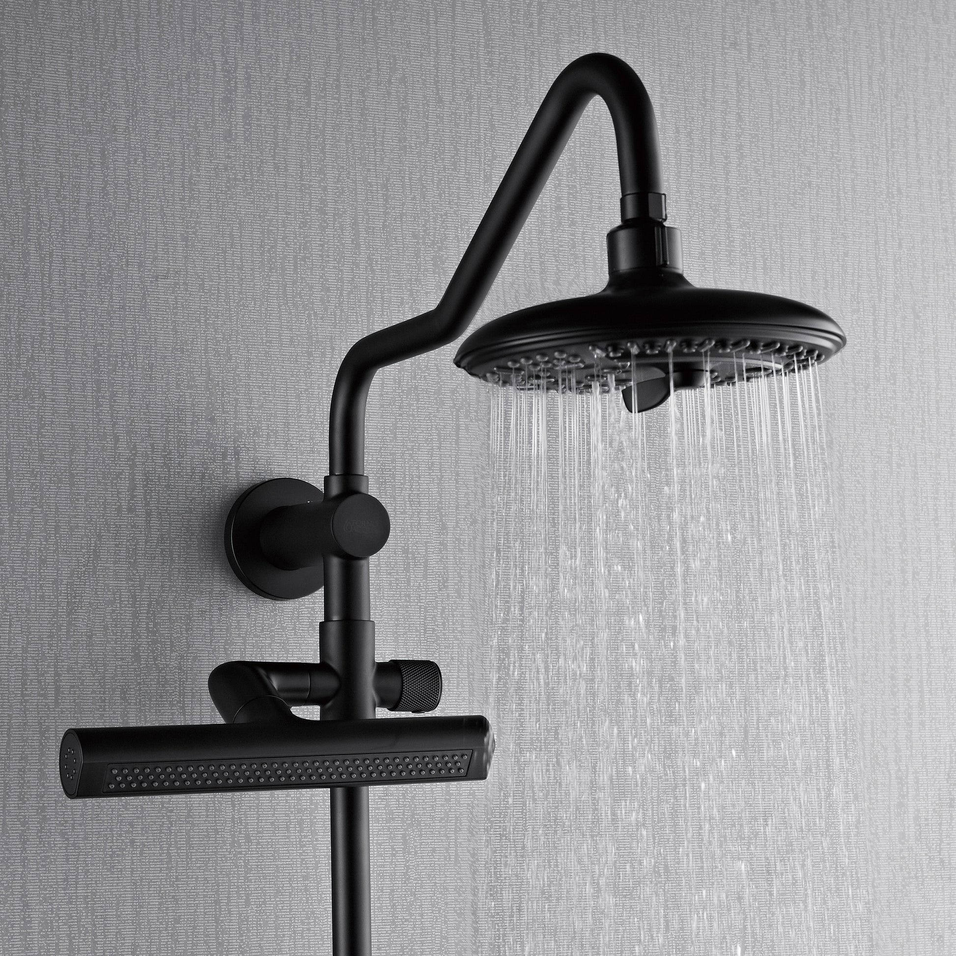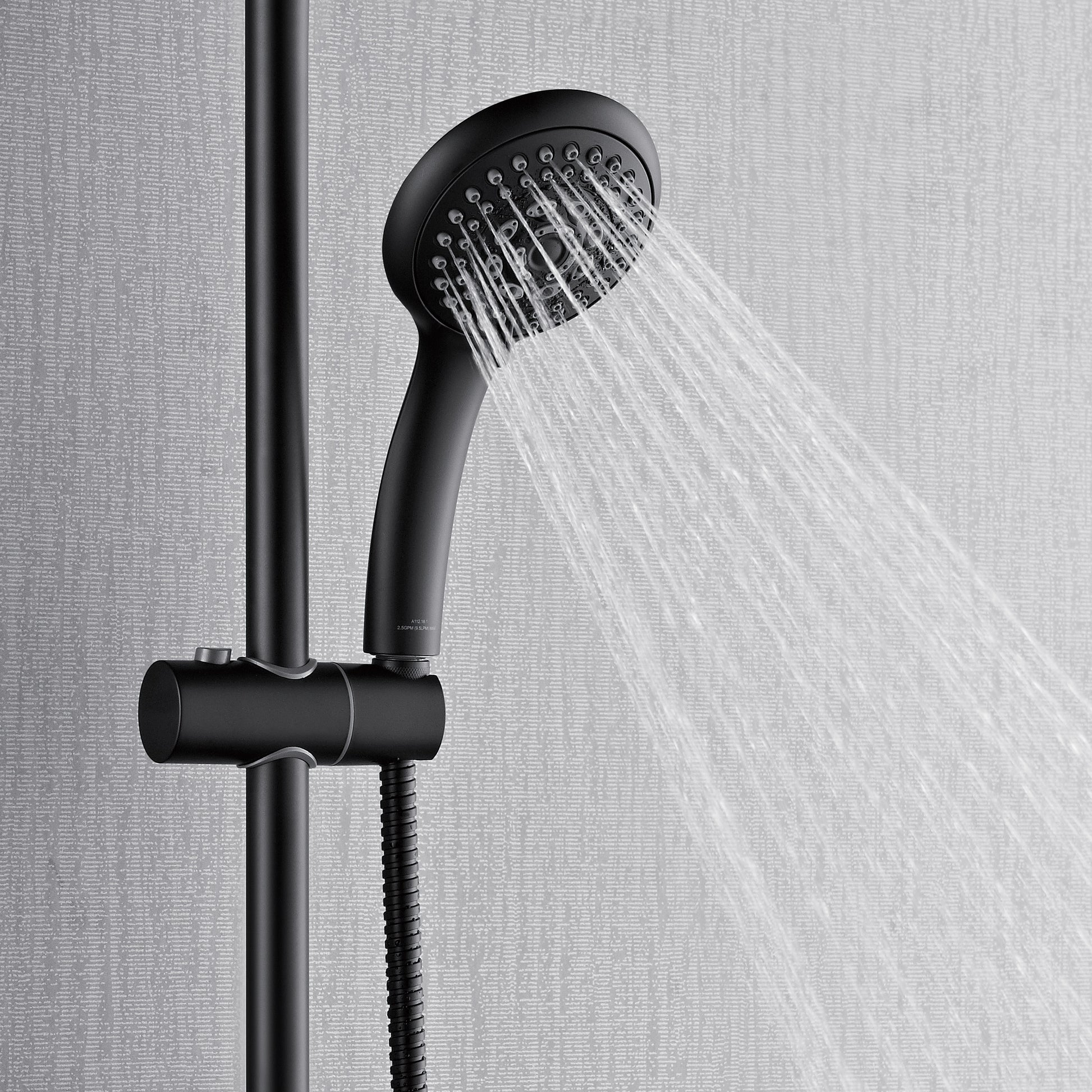 Forno Acqua AcquaFALL Shower, Matte Black Finish, Overhead Rainfall Shower, 7 Way Diverter, Handheld Shower Head, Body Jets, 2.5 GPM Flow Rate