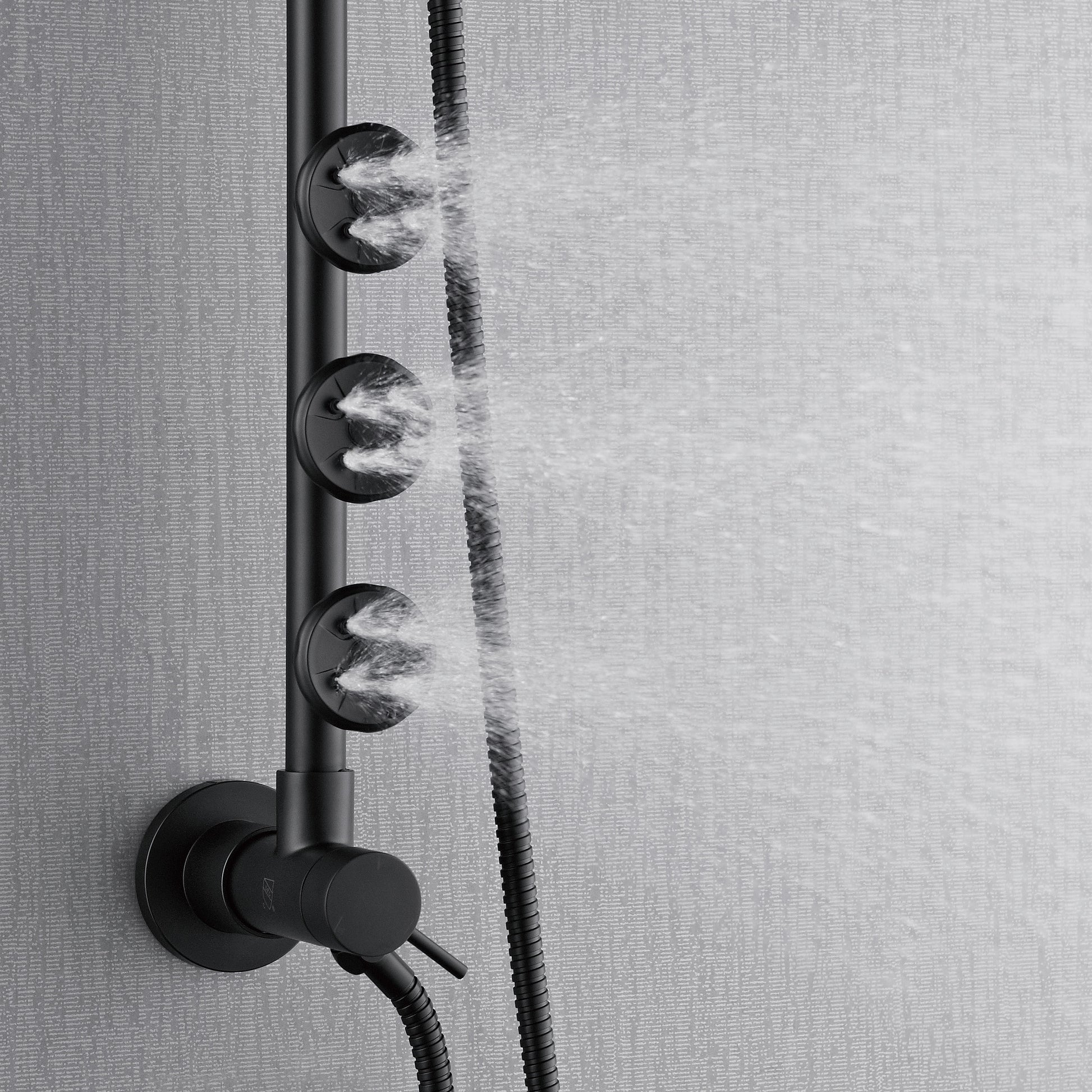 Forno Acqua AcquaSPA Retrofit Shower, Overhead Rainfall, 8 Inch Shower Head, Handheld Shower Head, Body Jets, 6 Way Diverter, Matte Black Finish, 1.8 GPM Flow Rate