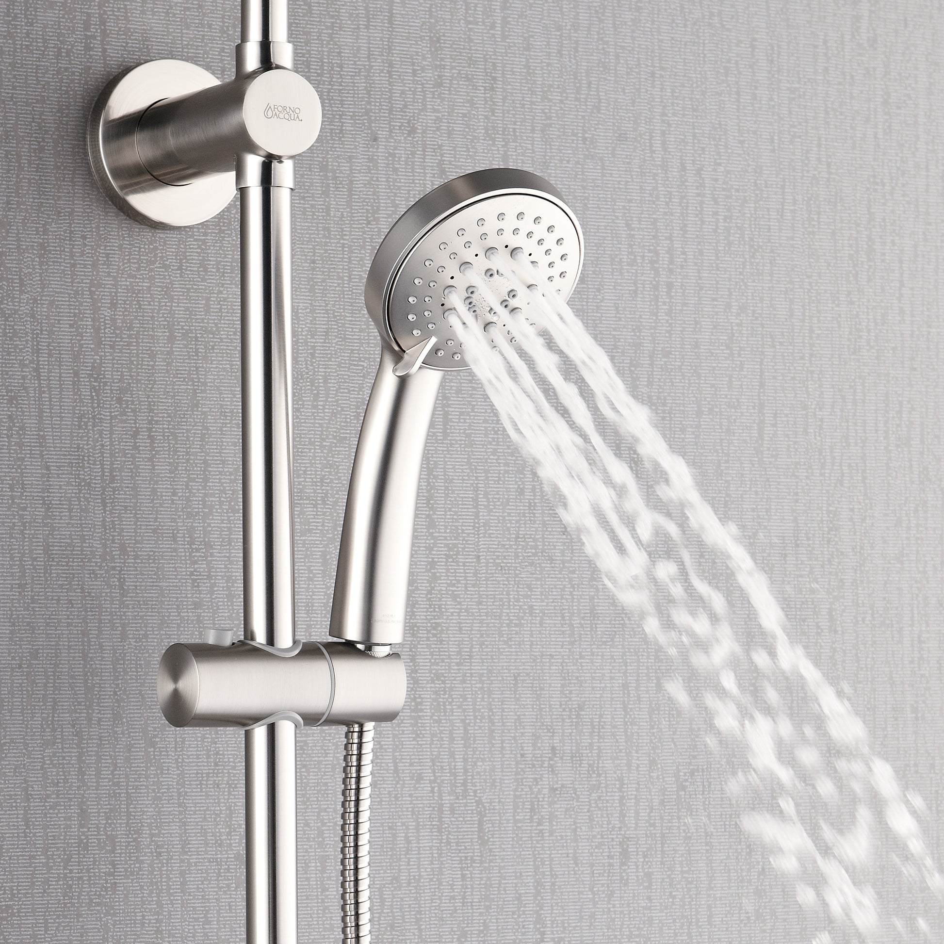Forno Acqua AcquaSPA Retrofit Shower, Overhead Rainfall Shower, Handheld Shower Head, Body Jets, 6 Way Diverter, Brushed Nickel Finish, 1.8 GPM Flow Rate