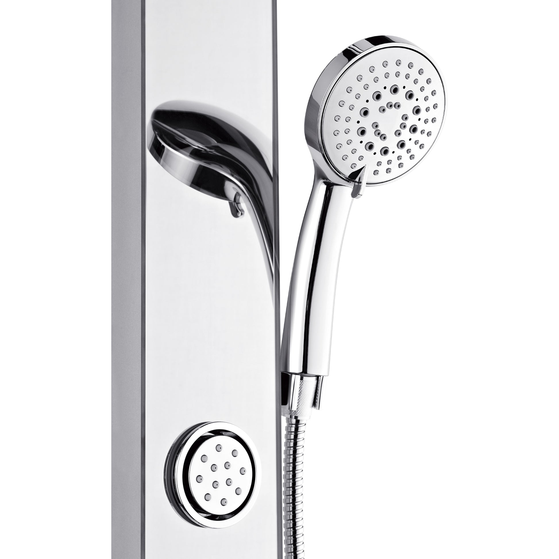Forno Acqua AcquaSPA Shower Panel with SensoTEMP, Mirrored Stainless Steel Finish, Overhead Rainfall Shower, Handheld Shower Head, Body Jets, 1.8 GPM Flow Rate