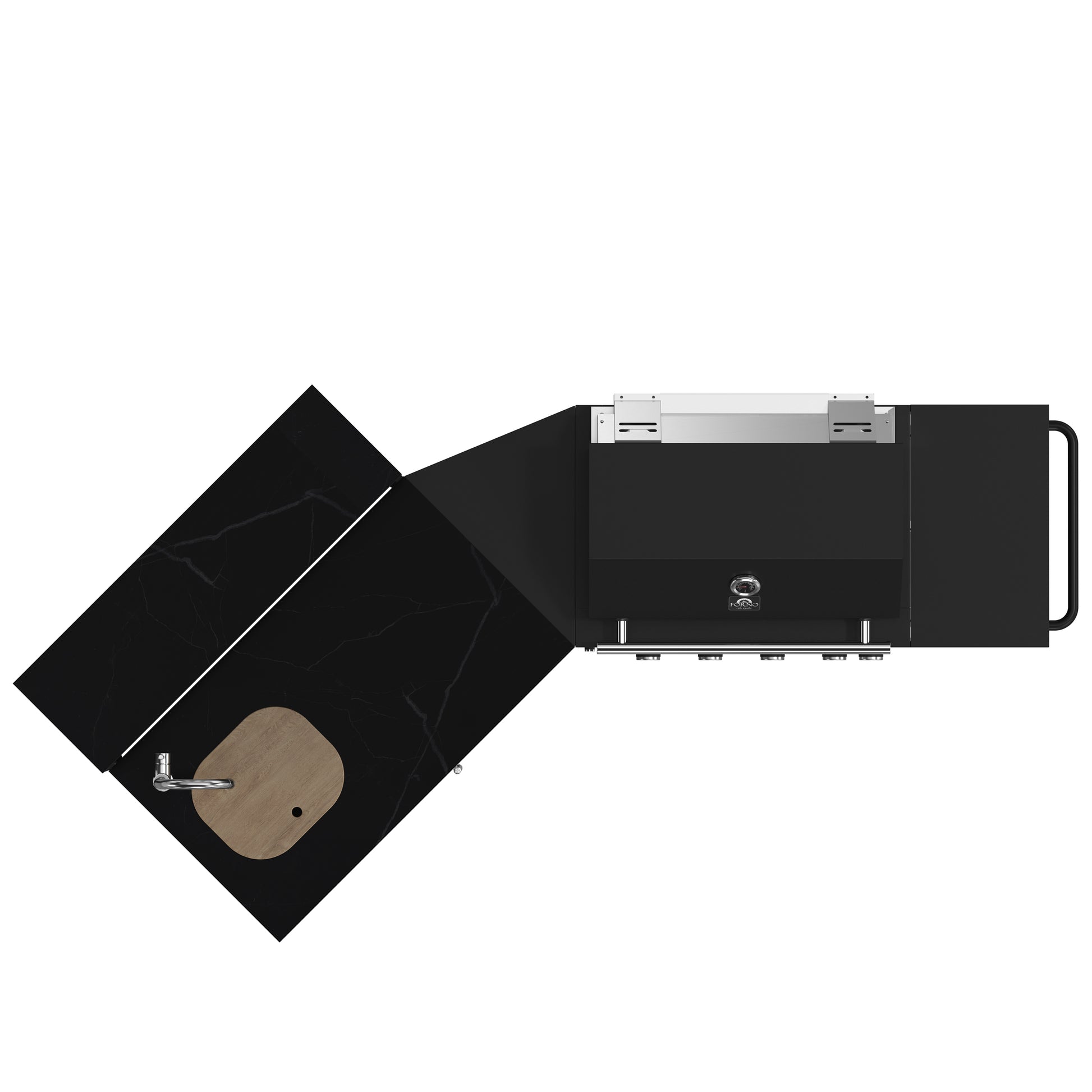 Forno All’Aperto 62,600 BTU BBQ, 3 Stainless Steel Burners, Infrared Burners, Sink Module, Black Sintered Stone Countertops, Bar and Beverage Center
