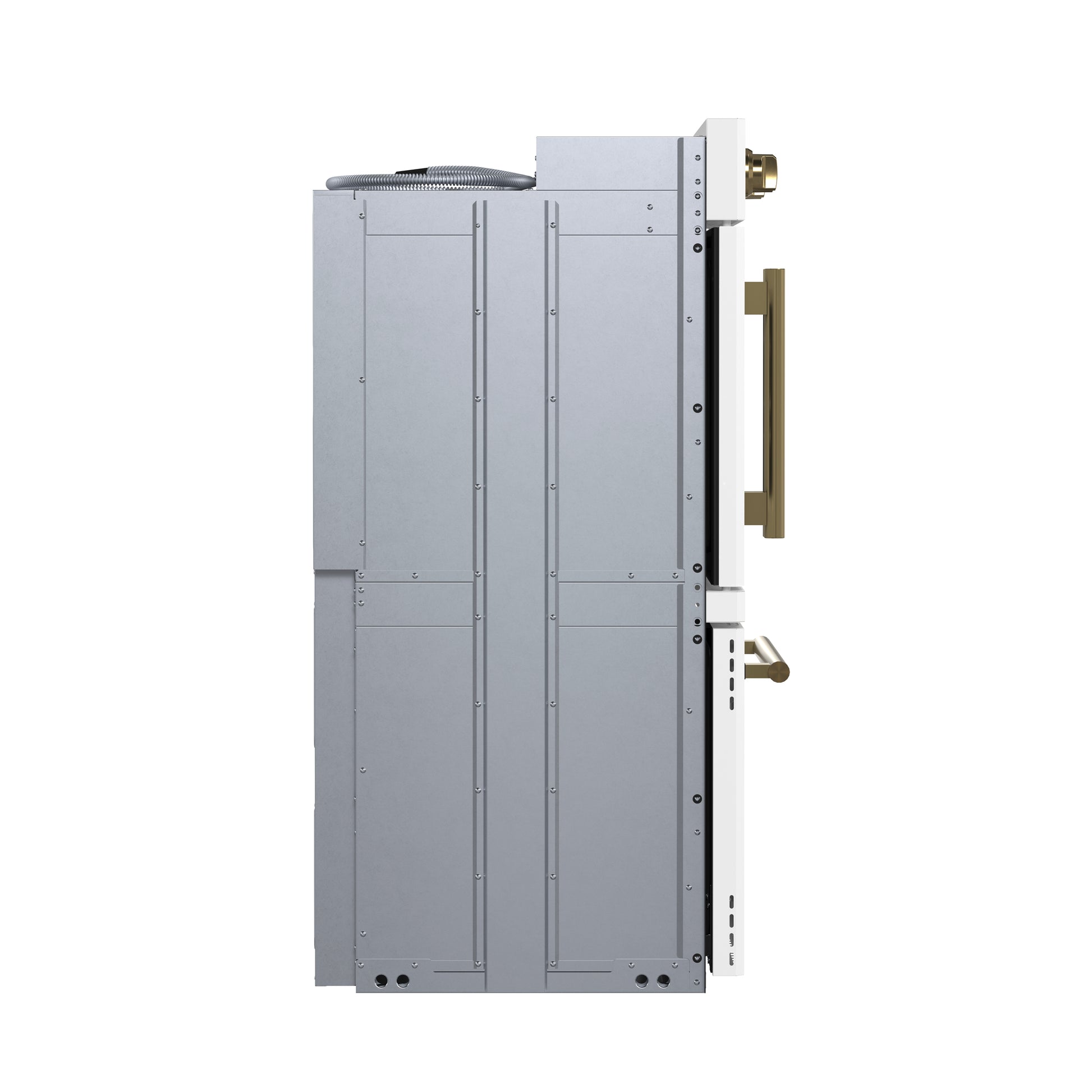 Forno Asti 30-Inch Double Electric Wall Oven with Upper French Doors in White & Antique Brass, 7.36 cu. ft. Dual True Convection, 7,200W, Air Fry, Sous Vide, Self-Clean