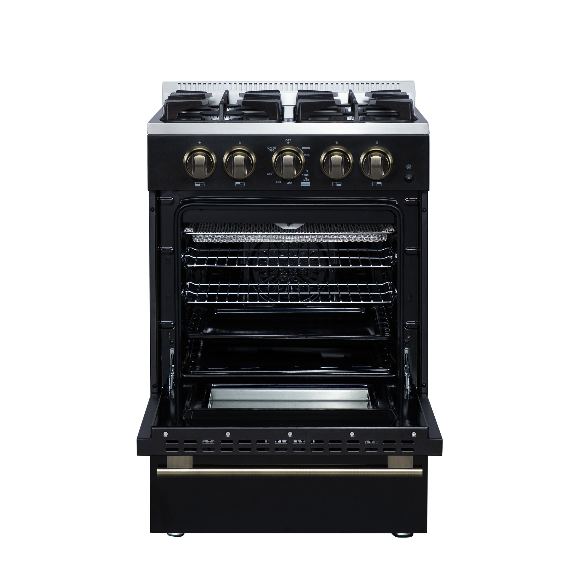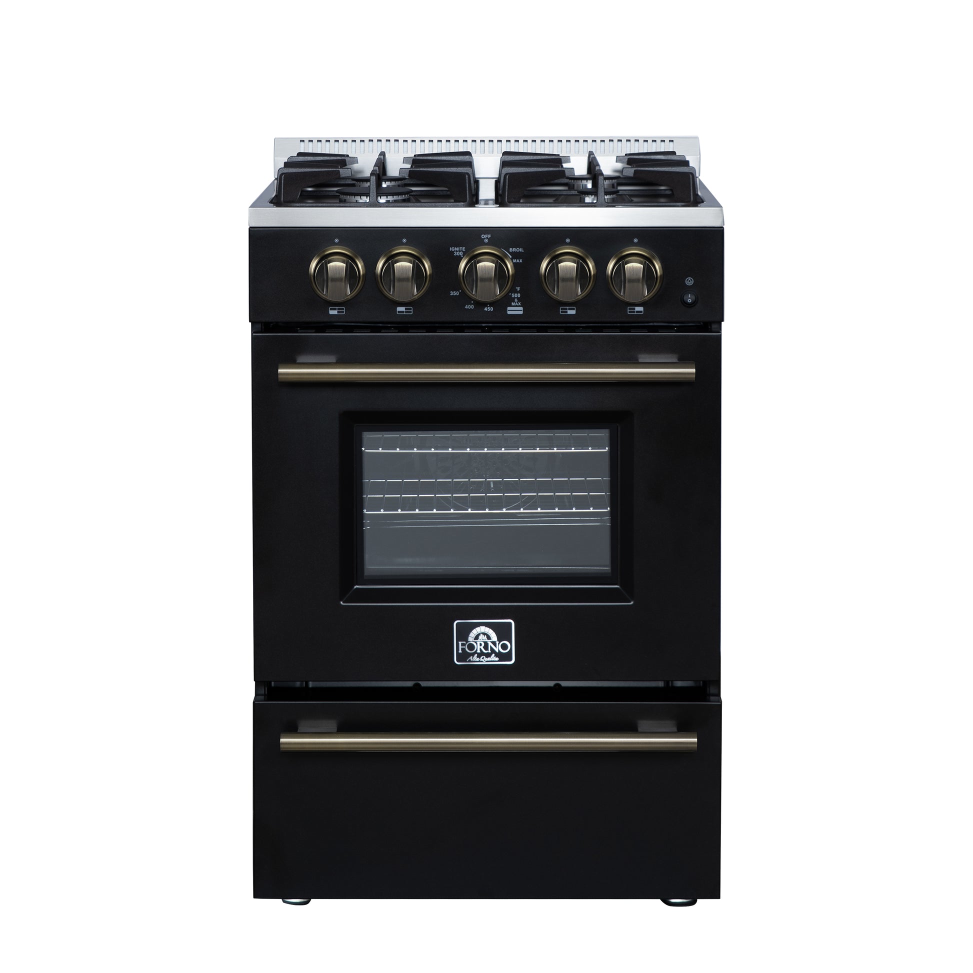 Forno Breno 24 Inch Freestanding Gas Range in Black with Antique Brass, Plug Included, Energy Efficient
