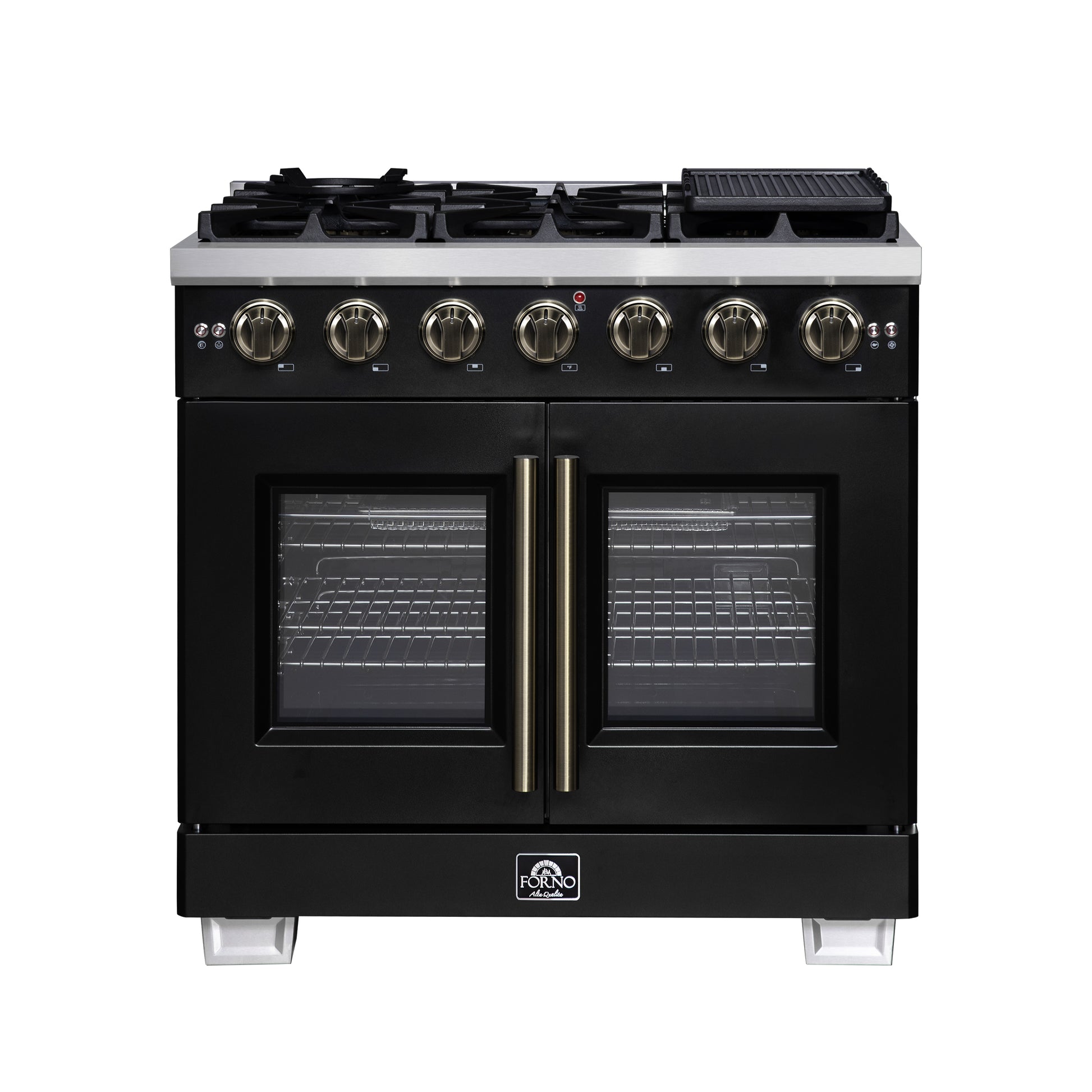 Forno Capriasca 36-Inch Black Freestanding French Door Gas Range, 6 Burners, Convection Oven, Energy Efficient