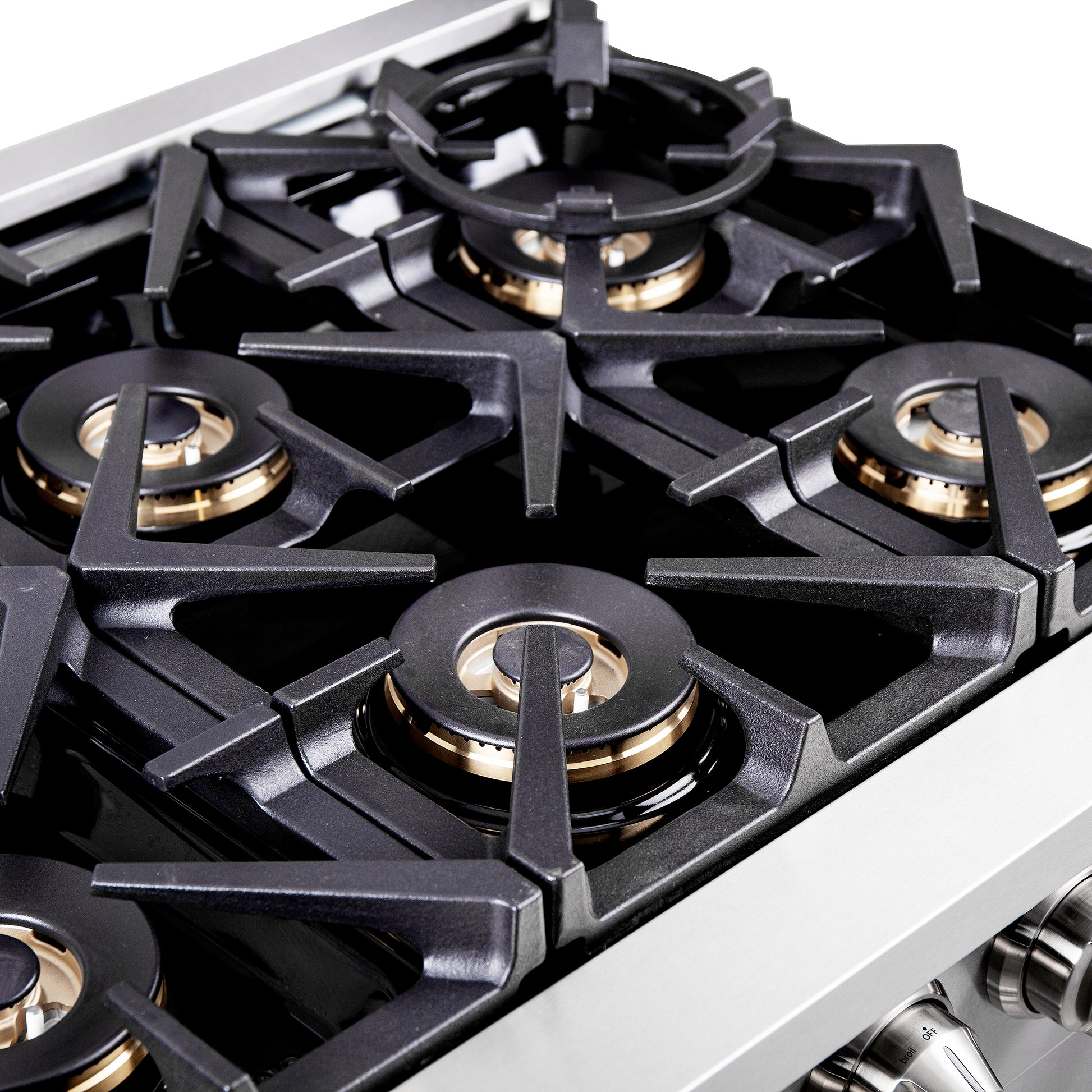 * 6 Sealed Dual-Ring Brass Burners combine a total stove-top out of 120,000 BTU.
