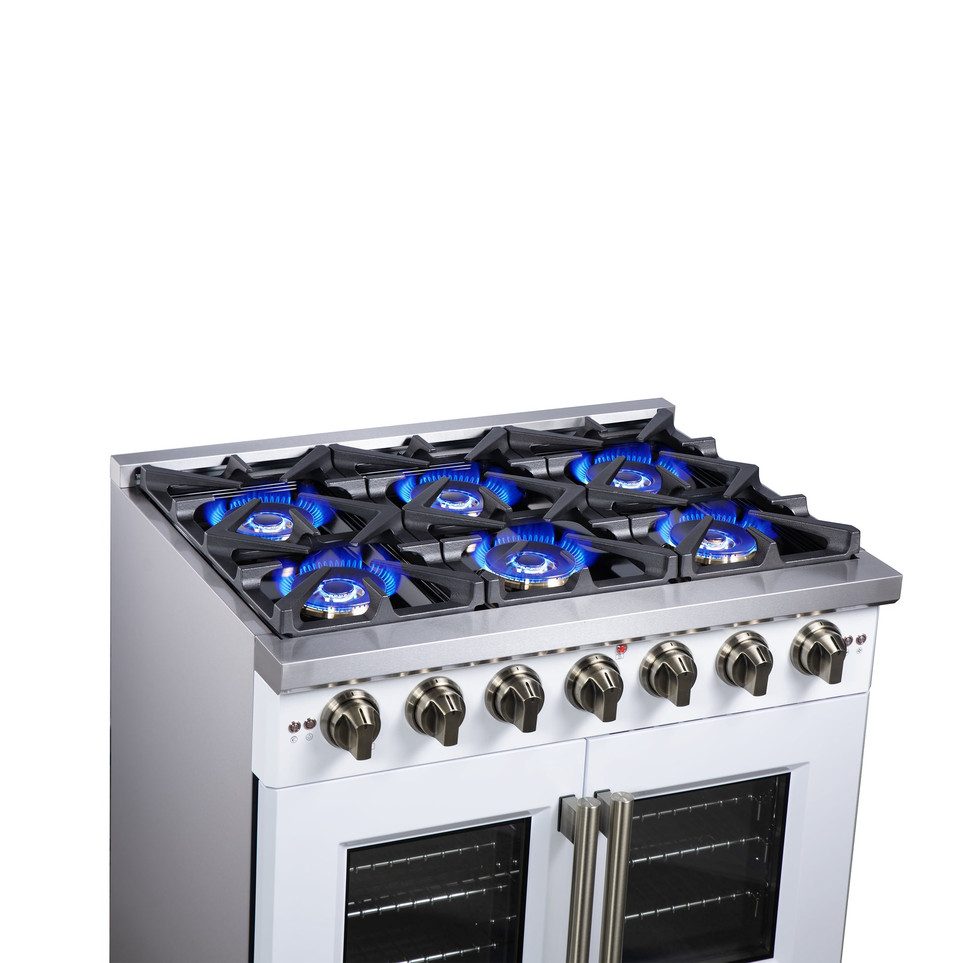 * 6 Sealed Dual-Ring Brass Burners combine a total stove-top out of 120,000 BTU.