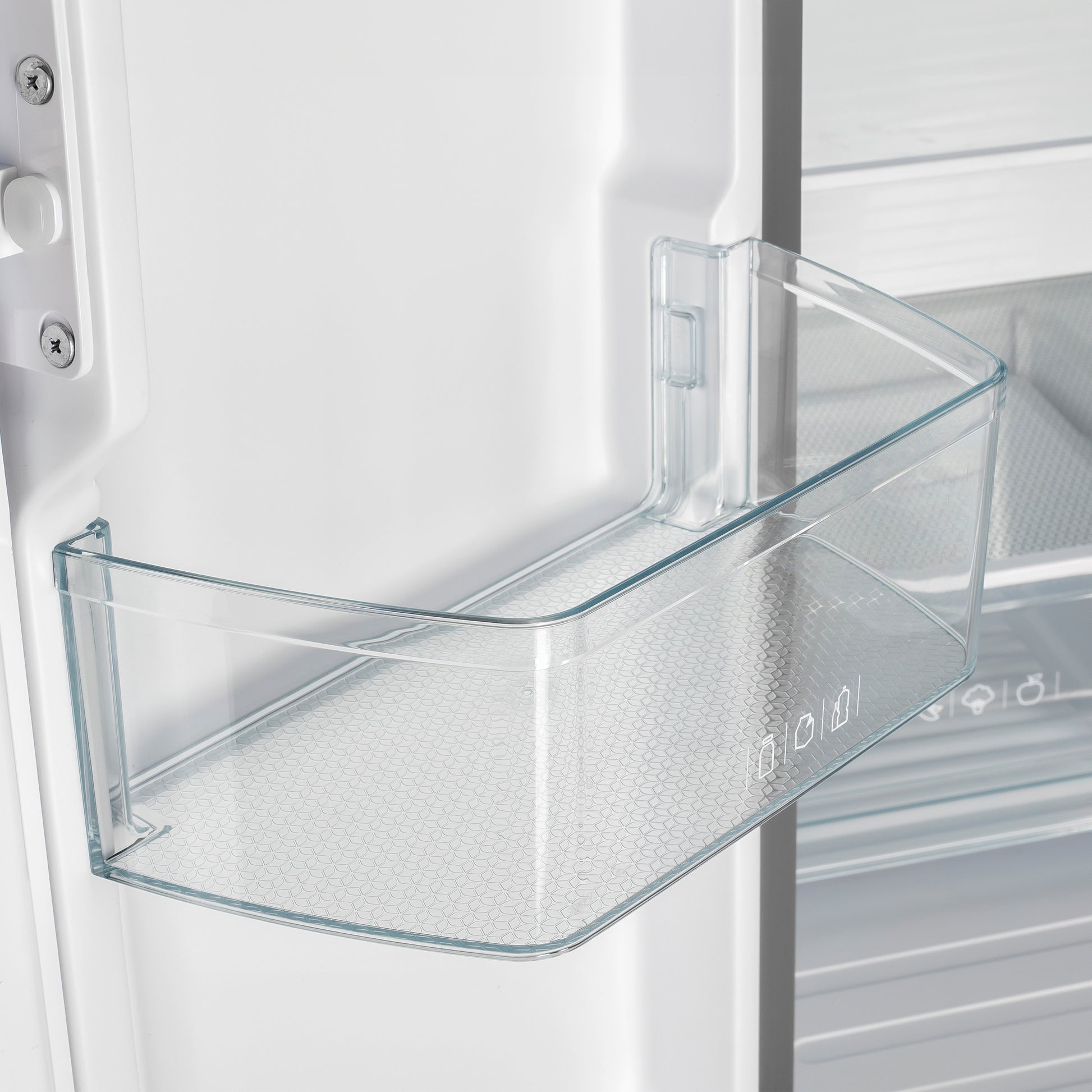 * The fresh food compartment is equipped with 3 glass shelves, 6 door bins, and 2 drawers.