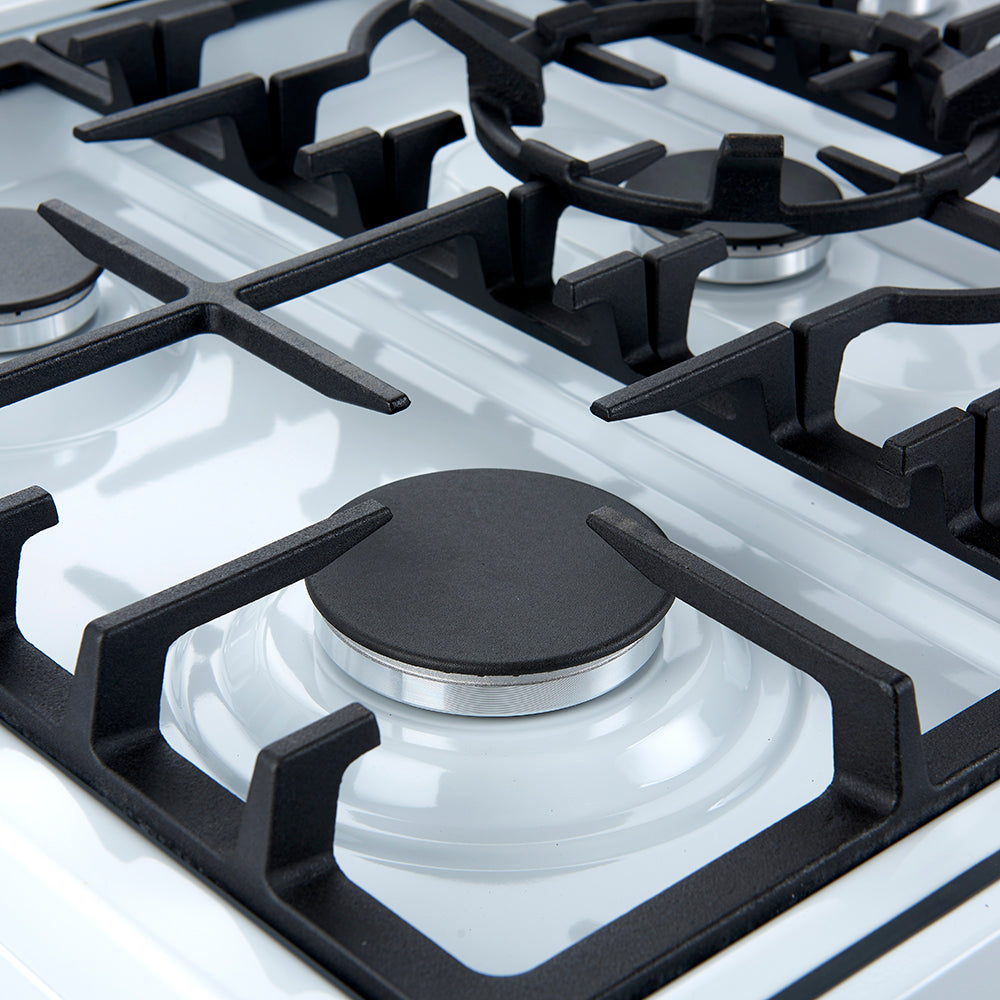 * Continuous cast iron grates ensure stability and mobility for cookware both on and off the heat source.
