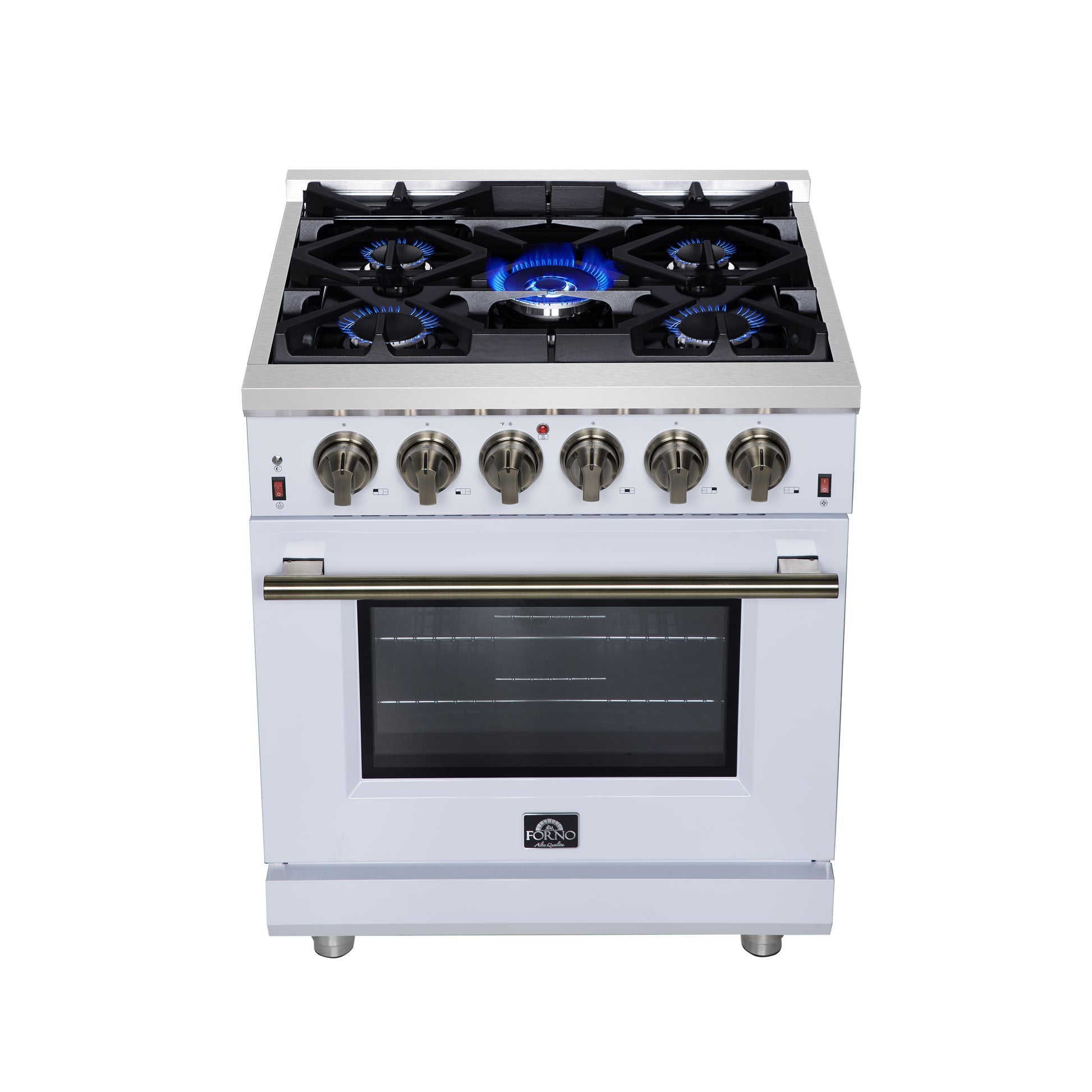 Forno Massimo 30-Inch White Freestanding Gas Range, 5 Burners, True Convection Oven