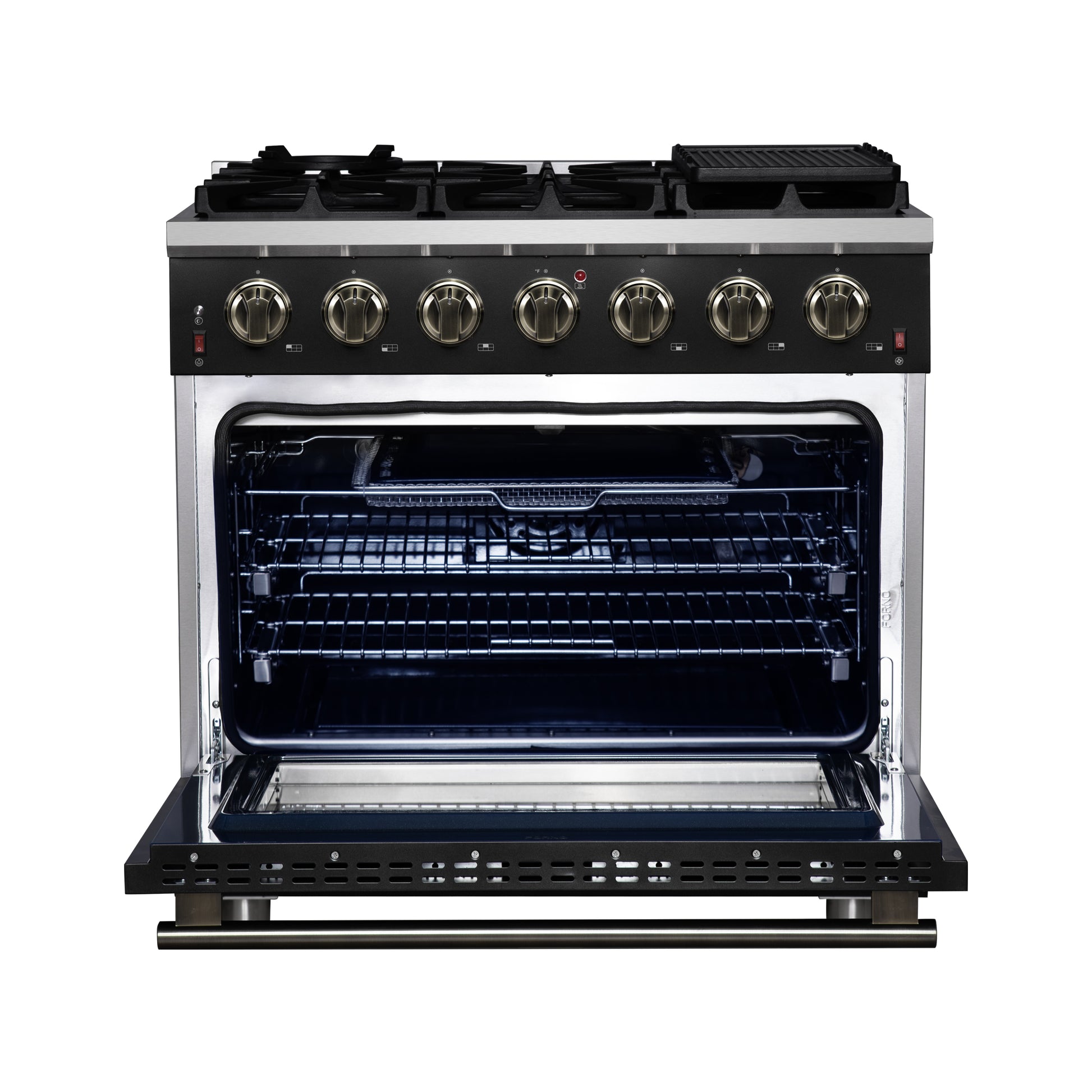 Forno Massimo 36-Inch Black Freestanding Gas Range, 6 Sealed Burners, Convection Oven, Energy Efficient