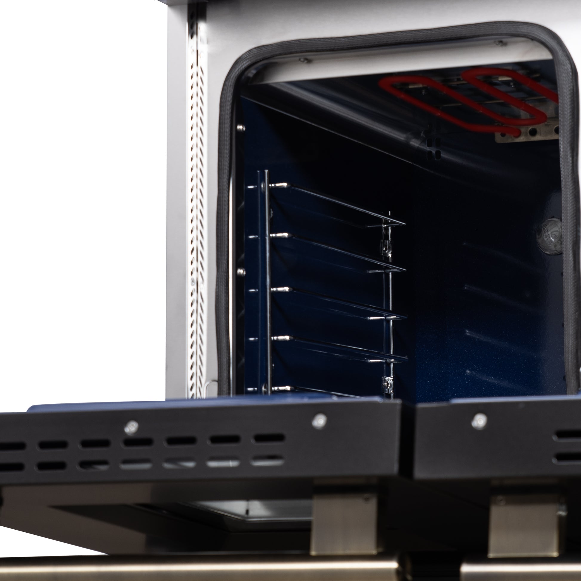 * 48 Inch Dual Fuel Range: Combines a gas cooktop with an electric convection oven for maximum cooking flexibility and control.