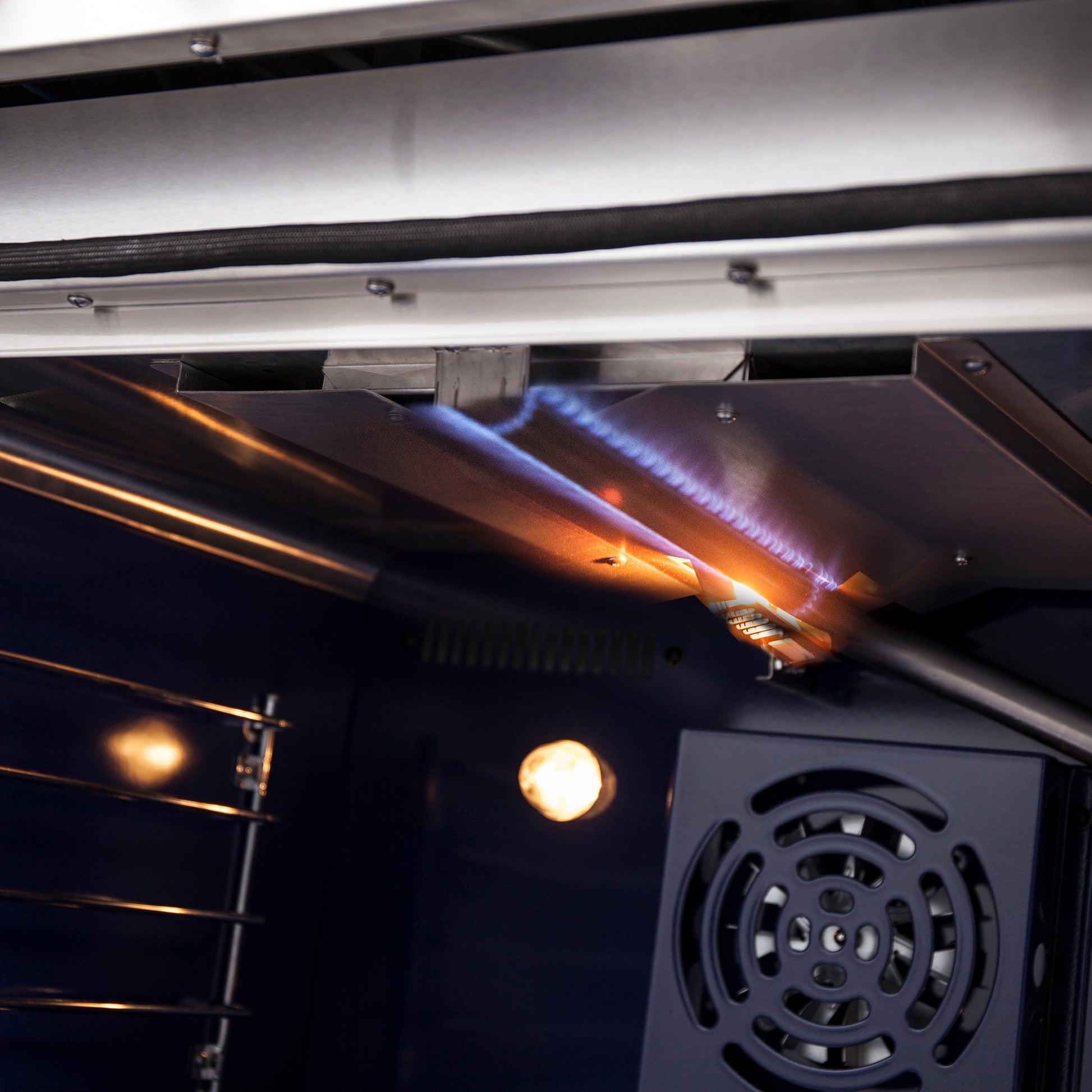 * 4.32 cu.ft convection oven with 30,000 BTU total broil and bake output