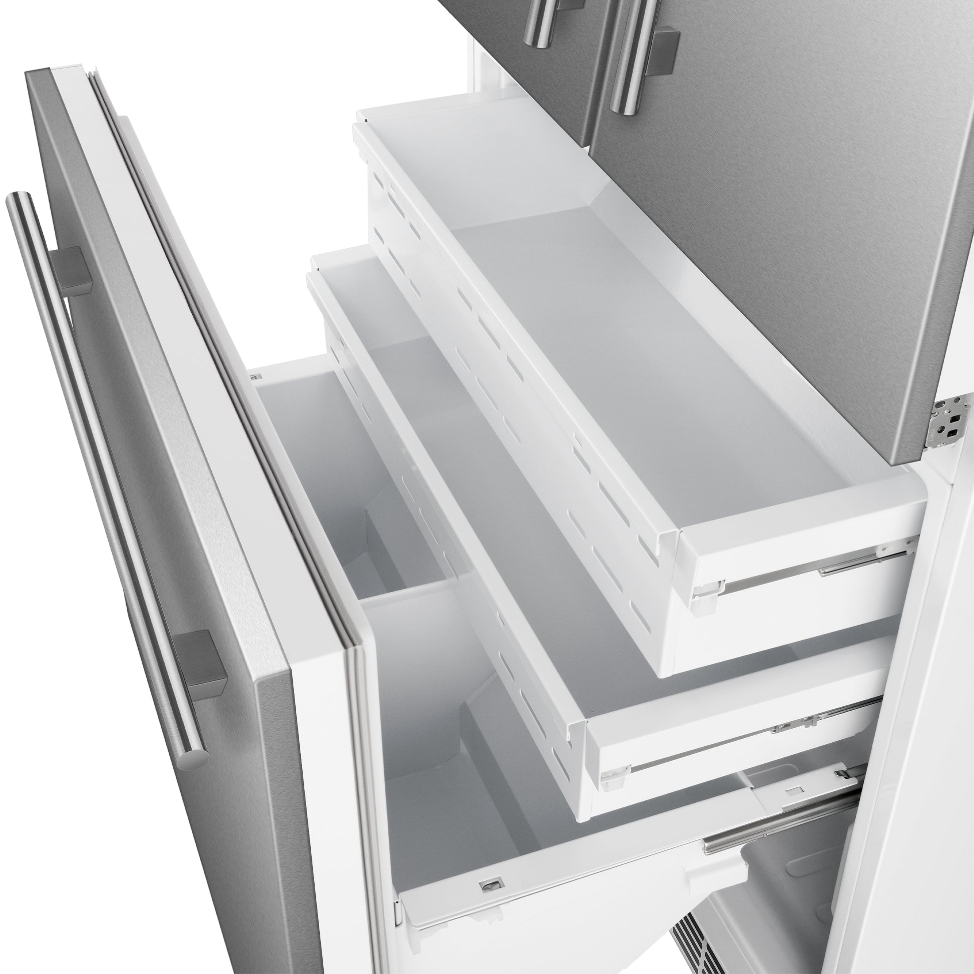 * Adjustable Fresh Food Shelves & Door Bins: Customize layout for flexible storage and easy access.